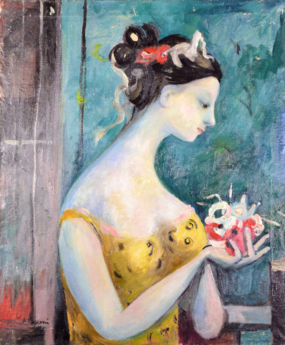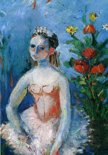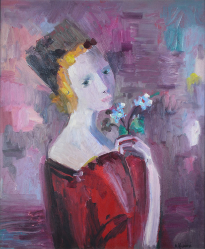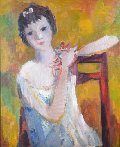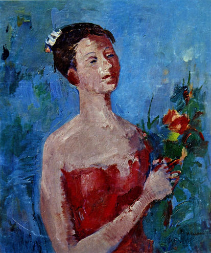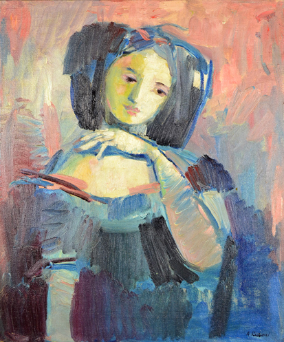 fauve, dove il risalto plastico è dato dalla pulsione del tono al controtono: un azzurro, dirò, contro un cremisi. Ma in genere, in quelle delicate figure femminili di giovani e adolescenti alle quali la pittrice dedica gran parte del suo lavoro, ciò che colpisce è l’espressione del volto: un’aria mite, buona, un visetto grazioso, un concetto di damina fine settecento: “stile Direttorio”.»