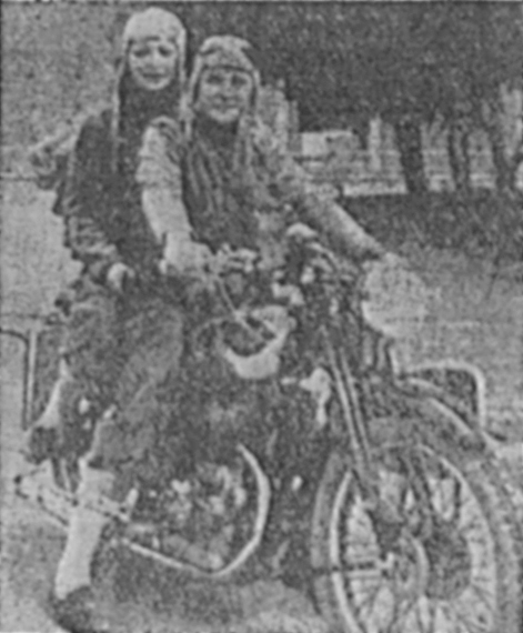 Seguendo la passione del papà per i motori, partecipa insieme alla sorella Gianna, a bordo di una rombante moto Gilera 250 cc, al “I° Tour femminile” in moto dell’Italia. E’ un evento epocale. Folle di curiosi, di appassionati e di fotografi accolgono le motocicliste ad ogni tappa del giro, mentre i giornali danno grande risalto all’iniziativa.